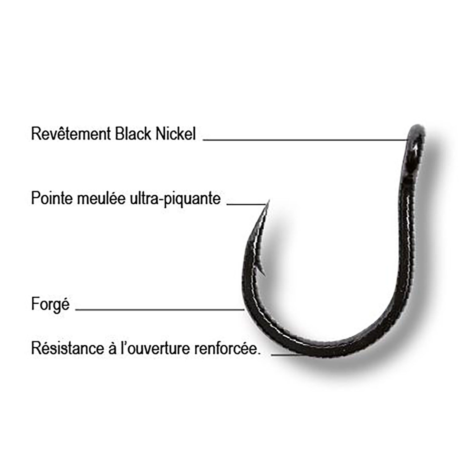 C’est un hameçon simple, fort de fer, extra large qui a la particularité en plus de sa résistance ultime