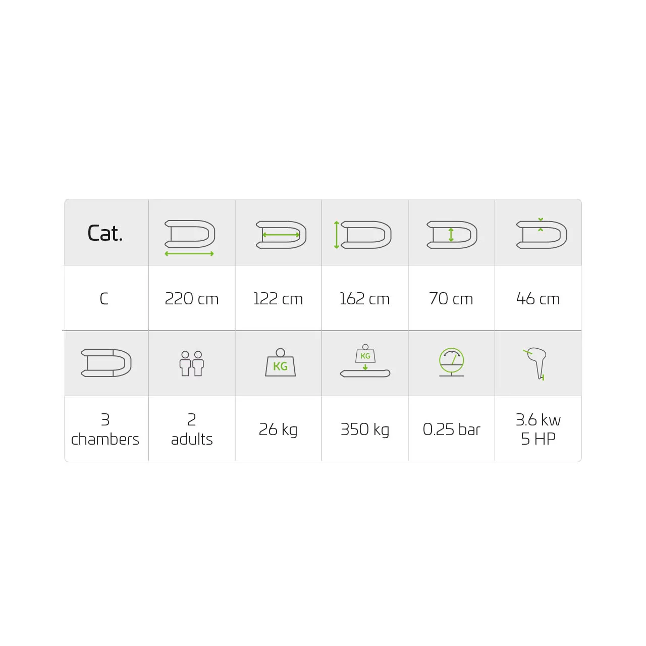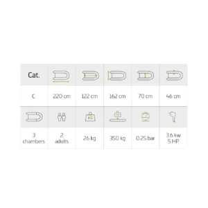Inclus Gonfleur , kit de réparation, Banc ,2 rames