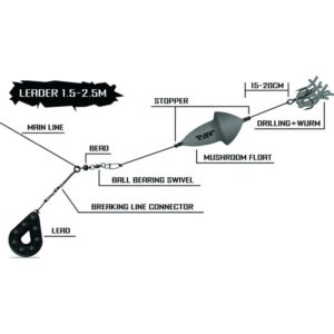 Un U-Float innovant avec une forme d’un champignon. Le Mushroom U-Float est conçu comme un champignon et peut être utilisé pour deux styles différents de présentations de l’appât. Tout d’abord, le Mushroom U-Float peut être monté via sa « tête » sur le bas de ligne, ce qui permet de faire tourbillonner l’appât dans le courant de façon plus discrète. Il convient parfaitement aux eaux à faible courant. Si le Mushroom U-Float est fixé par son « pied » sur le bas de ligne, tout le courant rencontre le dessous de la tête du champignon, ce qui crée un tourbillonnement plus important dans le courant au-dessus de l’appât. Ce montage est recommandé pour les eaux à fort courant.