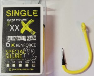 6 fois renforcé, cet hameçon simple est très piquant et aussi très résistant sur n’importe quelle gros poissons d’eau douce mais aussi pour les poissons de mer. Il est particulièrement recommandé pour les pêches avec échosondeur car il est couvert d’une protection anti magnétique grise très résistante qui le rend presque indétectable par les gros poissons très méfiants.
