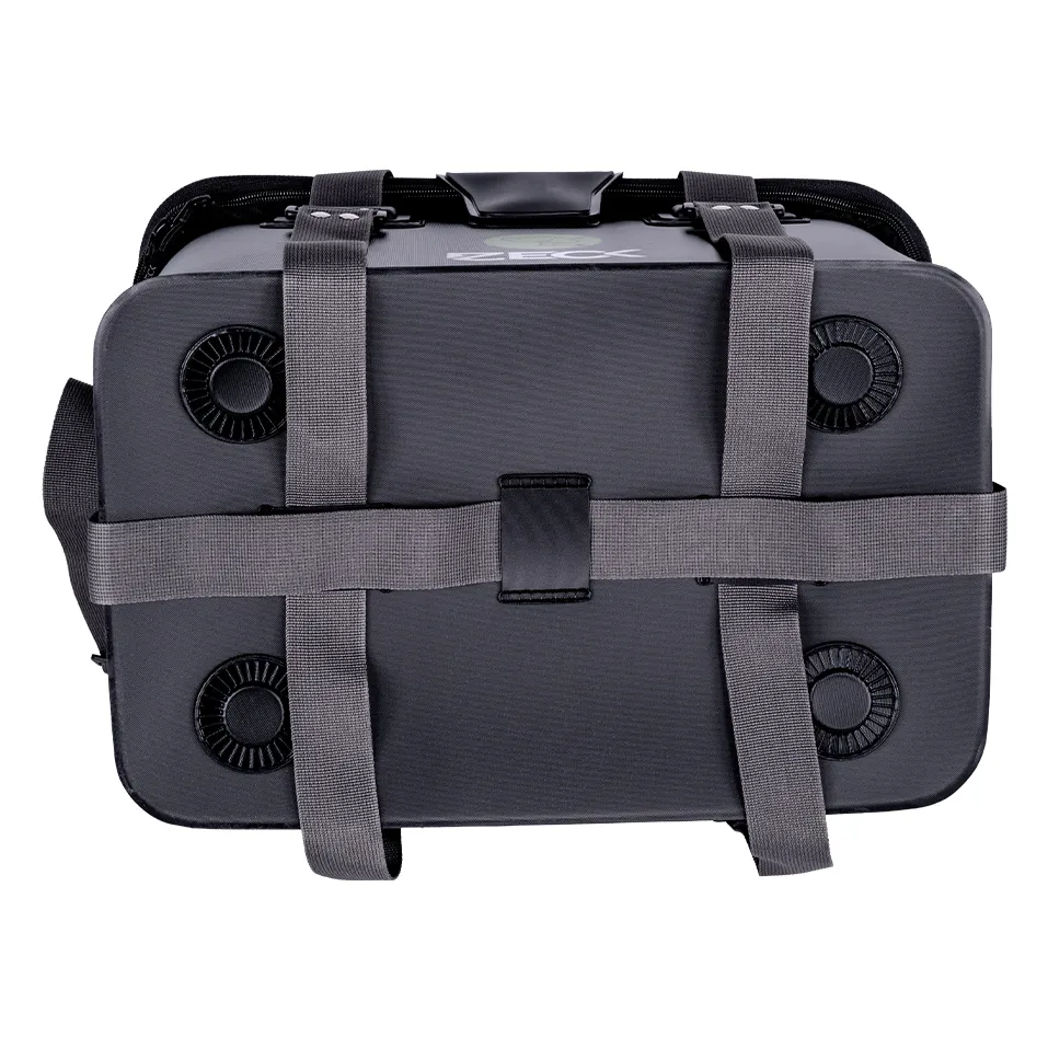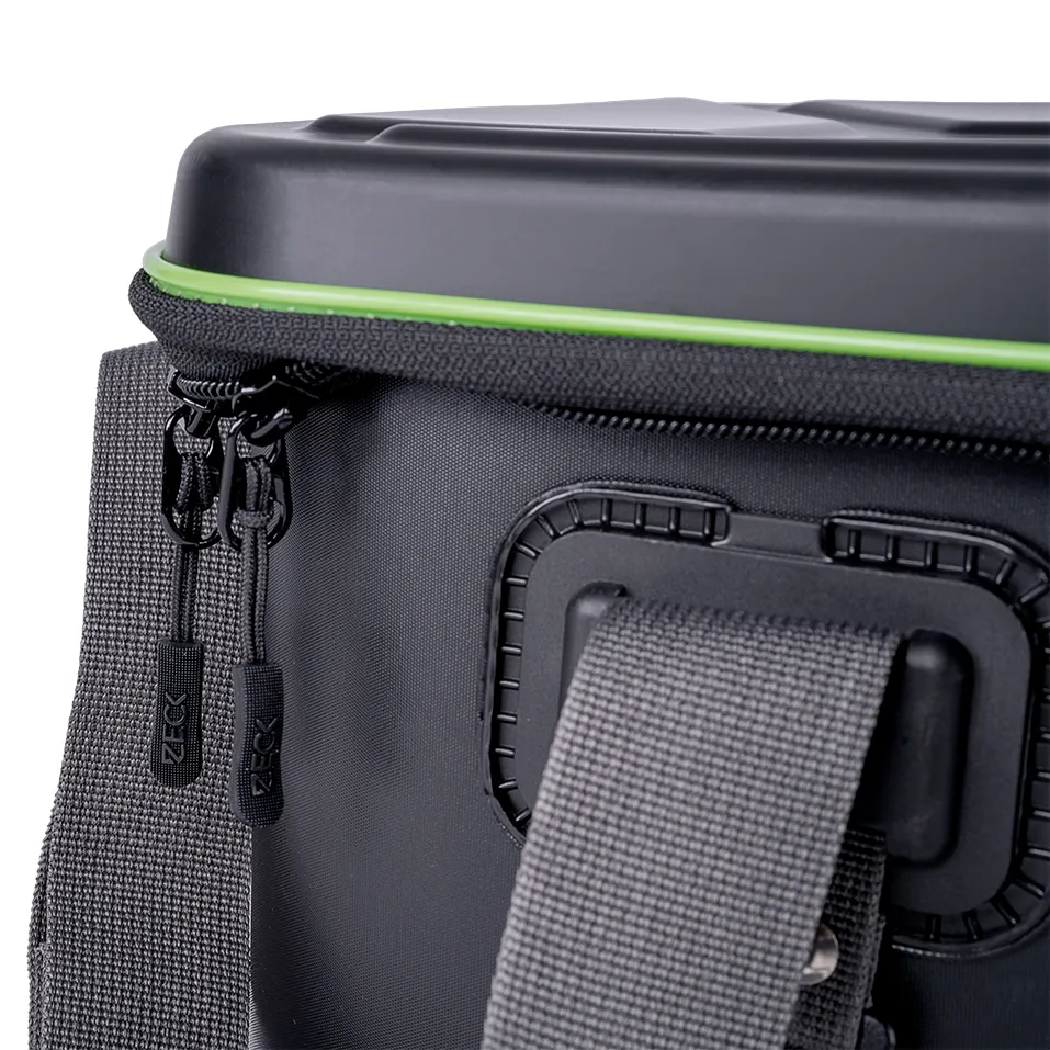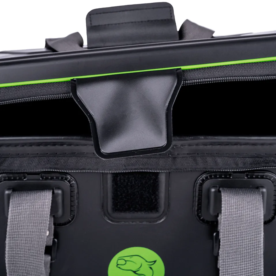 Le Tackle Container Pro est un sac robuste et totalement étanche qui convient à toutes sortes de choses qui doivent être transportées en toute sécurité. Grâce au couvercle superposé, le contenu reste sec dans toutes les situations. Le mur solide protège les marchandises transportées des pressions extérieures. Cela permet également de transporter des vifs